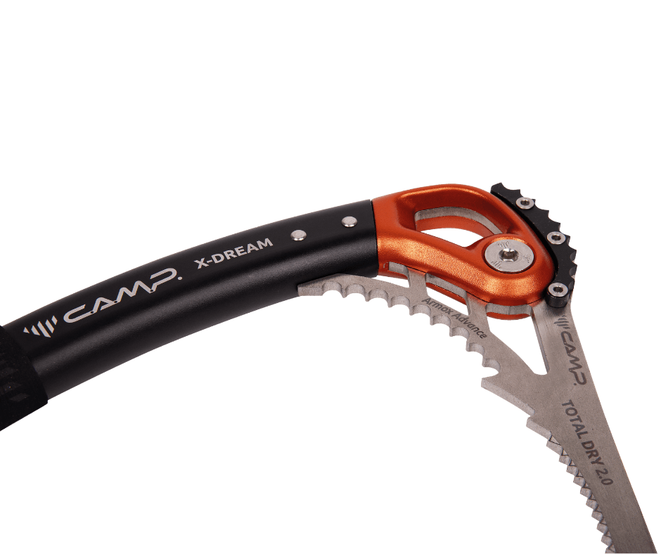 La X-Dream Total Dry è il nuovo attrezzo di riferimento per il dry tooling e le competizioni, dove garantisce prestazioni ancora più elevate della classica X-Dream. A fare la differenza sono la lama Total Dry 2.0 e l’impugnatura Total Dry montate di serie. La lama Total Dry 2.0, caratterizzata da un design particolarmente aggressivo, assicura durezza e robustezza estreme grazie alla costruzione in acciaio balistico Armox Advance, che può superare i 60 HRC di durezza con una tenacità senza pari. L’impugnatura Total Dry presenta un design allungato per massimizzare lo spazio interno ottimizzando i cambi mano e per raggiungere le prese più lontane. A differenza della classica impugnatura X-Dream, la Total Dry è fissa con un angolo ideale per gli agganci e le trazioni su roccia e sulle strutture artificiali. Da notare che l’attrezzo è completamente modulare, con la possibilità di sostituire la lama Total Dry 2.0 con tutte le altre della serie X-Dream (Omni, Ice e Hard Mixte, acquistabili a parte) e l’impugnatura Total Dry con quella standard, disegnata per il ghiaccio e il misto (anch’essa acquistabile a parte).