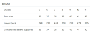 - Peso mezzo paio misura W7/M9: 311 g